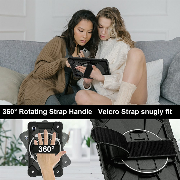 Tillverkat av högkvalitativt silikon och PC-material ger fodralet ett överlägset skydd mot stötar, repor och fall. Den förstärkta ramen absorberar kraften vid stötar och håller din surfplatta säker, medan det inbyggda stället gör det enkelt att titta på filmer, läsa eller arbeta handsfree. Med ett 360° roterbart handtag får du stabilt grepp, och tack vare axelremmen kan du bära surfplattan smidigt och bekvämt över axeln. Dessutom finns ett sidofack för din penna – perfekt för dig som är kreativ eller alltid i farten.