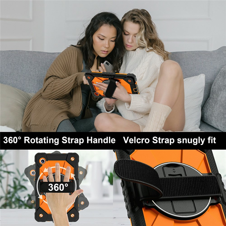 Tillverkat av högkvalitativt silikon och PC-material ger fodralet ett överlägset skydd mot stötar, repor och fall. Den förstärkta ramen absorberar kraften vid stötar och håller din surfplatta säker, medan det inbyggda stället gör det enkelt att titta på filmer, läsa eller arbeta handsfree. Med ett 360° roterbart handtag får du stabilt grepp, och tack vare axelremmen kan du bära surfplattan smidigt och bekvämt över axeln. Dessutom finns ett sidofack för din penna – perfekt för dig som är kreativ eller alltid i farten.
