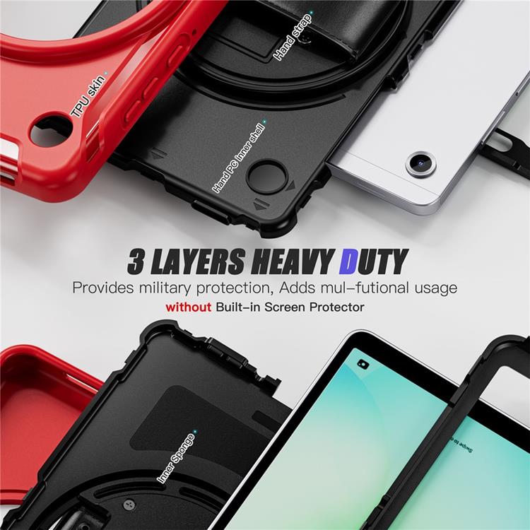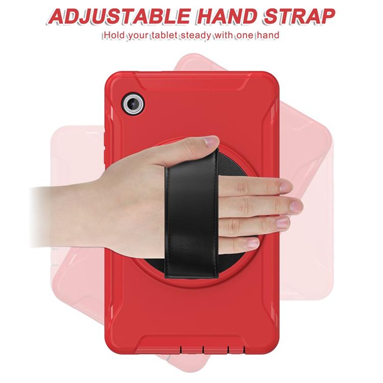 Galaxy Tab A11 Skal Rotary Kickstand med Handrem PC + TPU - Röd