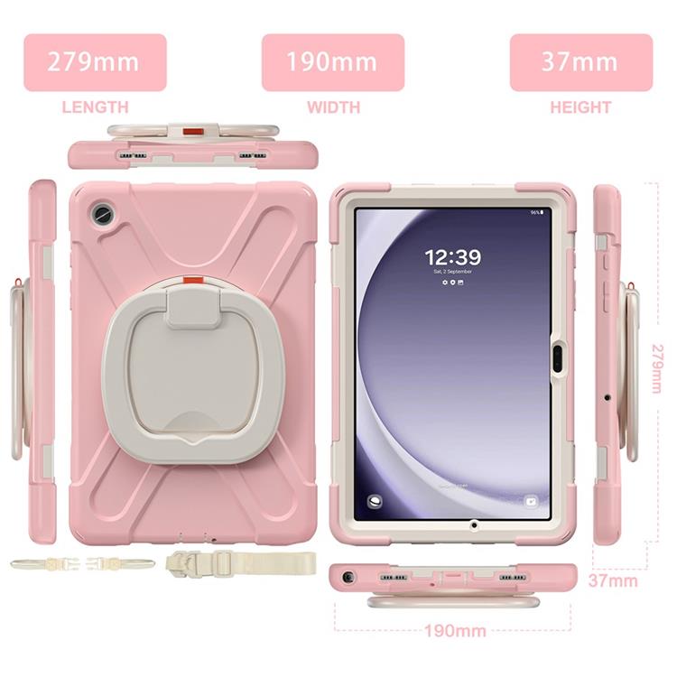 Galaxy Tab A9 Plus Skal Kickstand Handle Grip TPU + PC + Silikon - Rosa