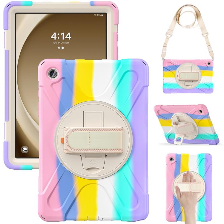 Galaxy Tab A9 Plus Skal Kickstand Handrem PC+ Silikon Med Axelrem - Färgglad Rosa