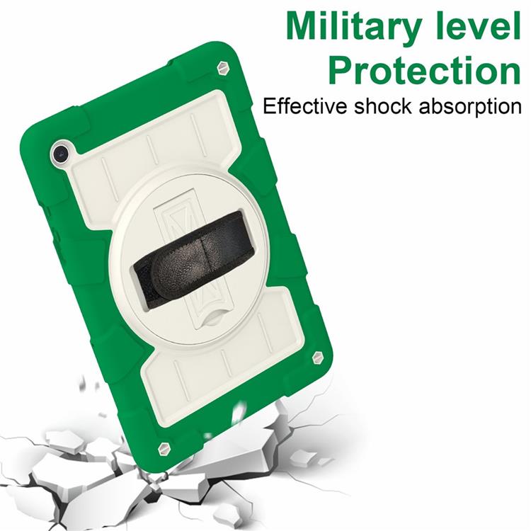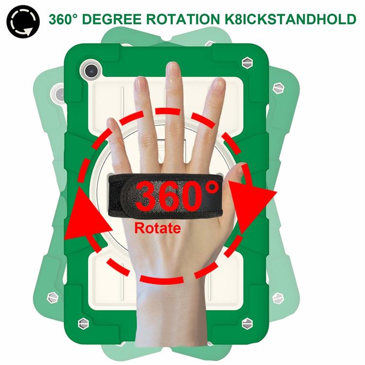 Galaxy Tab A9 Plus Skal Kickstand Rotating Handrem PC+TPU Med Axelrem - Grön