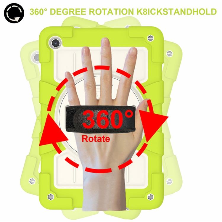 Galaxy Tab A9 Plus Skal Kickstand Rotating Handrem PC+TPU Med Axelrem - Gulgrön
