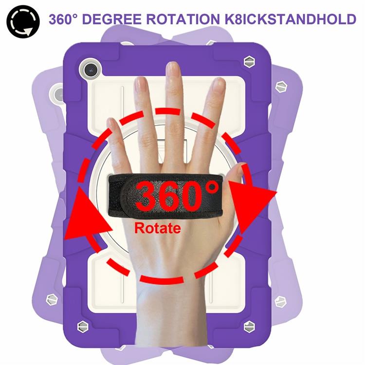 Galaxy Tab A9 Plus Skal Kickstand Rotating Handrem PC+TPU Med Axelrem - Lila