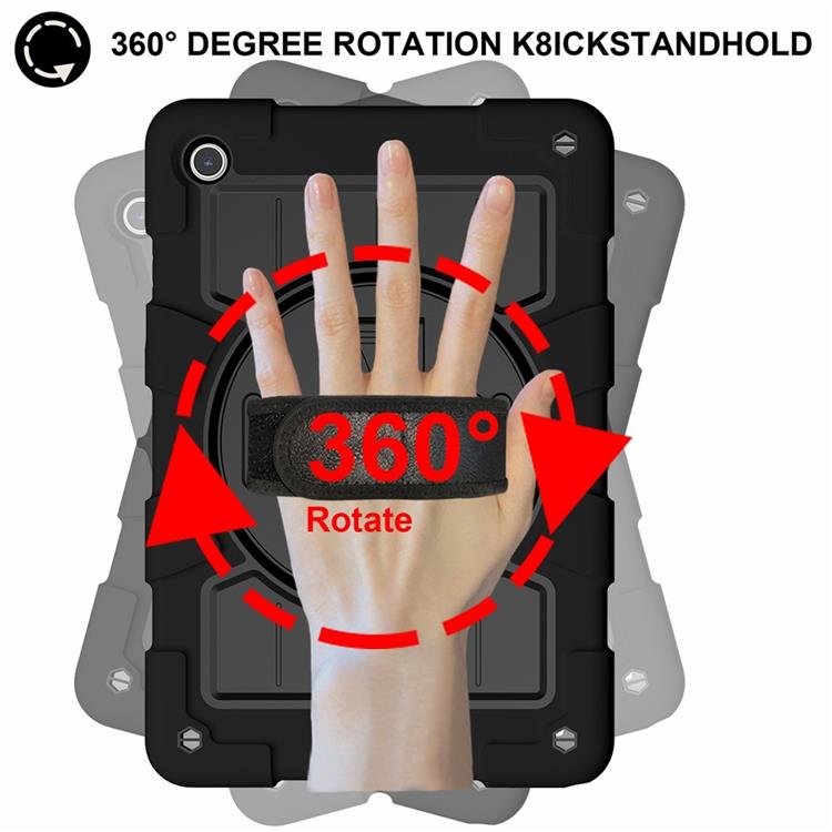 Galaxy Tab A9 Plus Skal Kickstand Rotating Handrem PC+TPU Med Axelrem - Svart