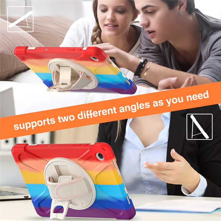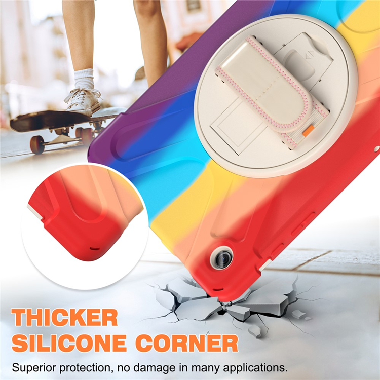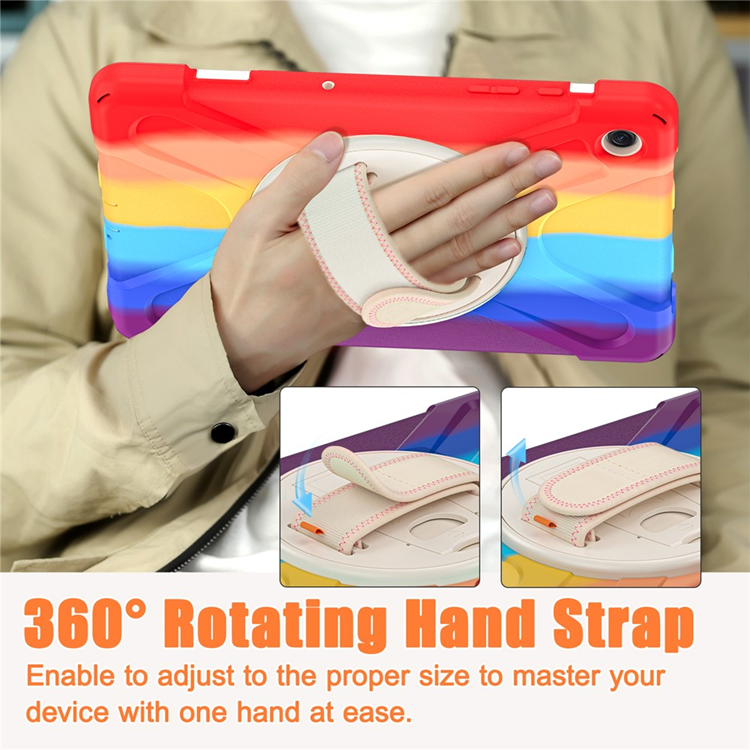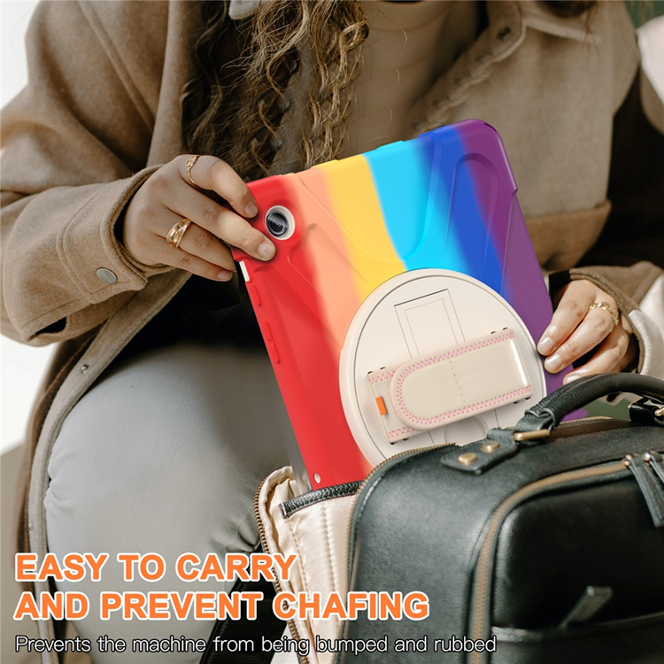 Galaxy Tab A9 Plus Skal Silikon + PC Rotary Kickstand med handrem - Färgröd