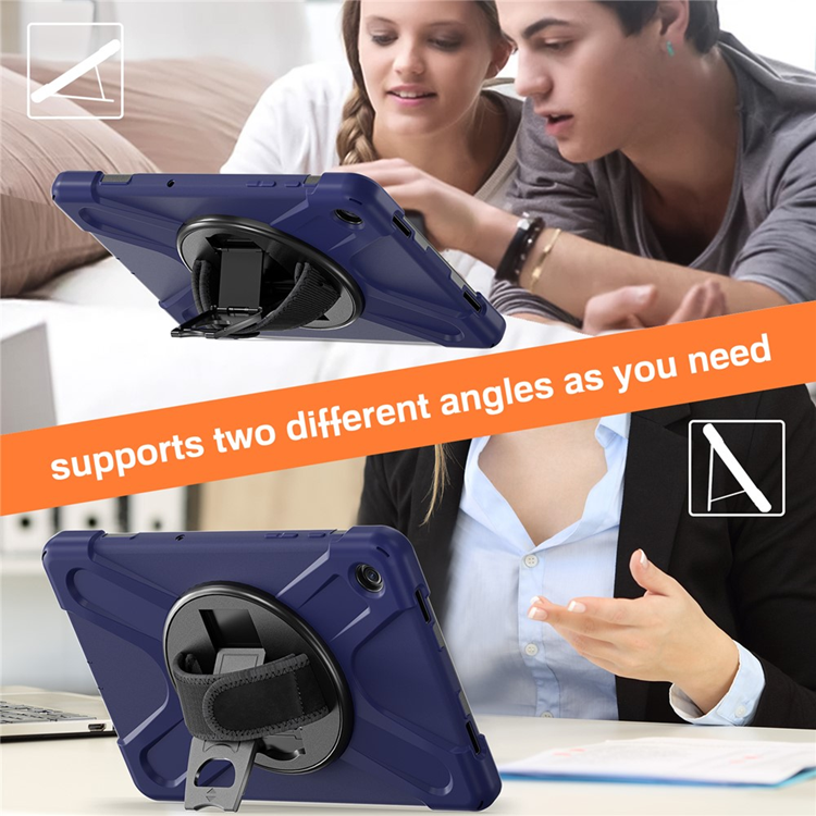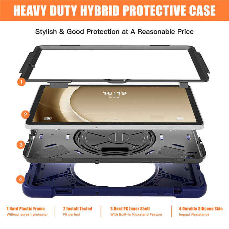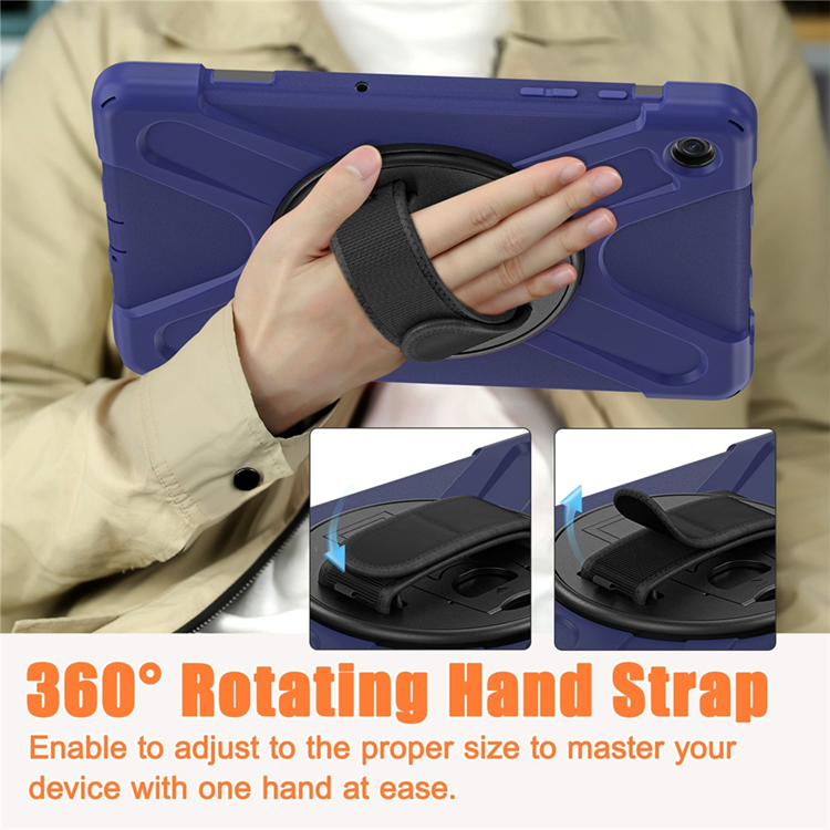 Galaxy Tab A9 Plus Skal Silikon + PC Rotary Kickstand med handrem - Marinblå