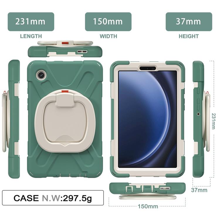 Galaxy Tab A9 Skal Kickstand Handle Grip TPU + PC + Silikon - Emerald Grön