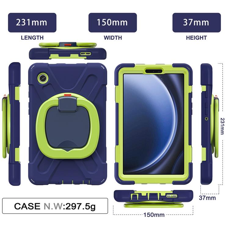 Galaxy Tab A9 Skal Kickstand Handle Grip TPU + PC + Silikon - Marinblå / Gulgrön