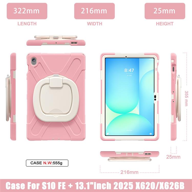 Galaxy Tab S10 FE Plus Skal Kickstand Handle Grip TPU + PC + Silikon - Rosa