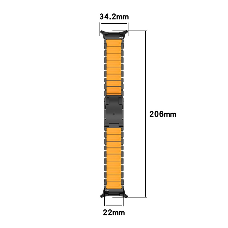 Den trendiga tvåfärgade designen ger ett modernt och exklusivt utseende som passar lika bra till vardags som vid formella tillfällen. Tack vare den unika sköldpaddsspännet får du ett säkert grepp och enkel justering, medan den justerbara längden (14,2–21,6 cm) gör att armbandet passar perfekt på de flesta handleder. Detta är den ultimata ersättningsremmen för dig som vill kombinera funktionalitet med en sofistikerad look.