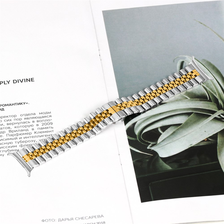 Ge din klocka ett lyft med detta eleganta armband i rostfritt stål – en perfekt kombination av klass, styrka och komfort. Tillverkat av högkvalitativt rostfritt stål ger det en lyxig känsla och en professionell look som passar lika bra på kontoret som vid festliga tillfällen. Den tidlösa designen med femlänksstruktur ger klockan ett sofistikerat uttryck som aldrig går ur tiden.