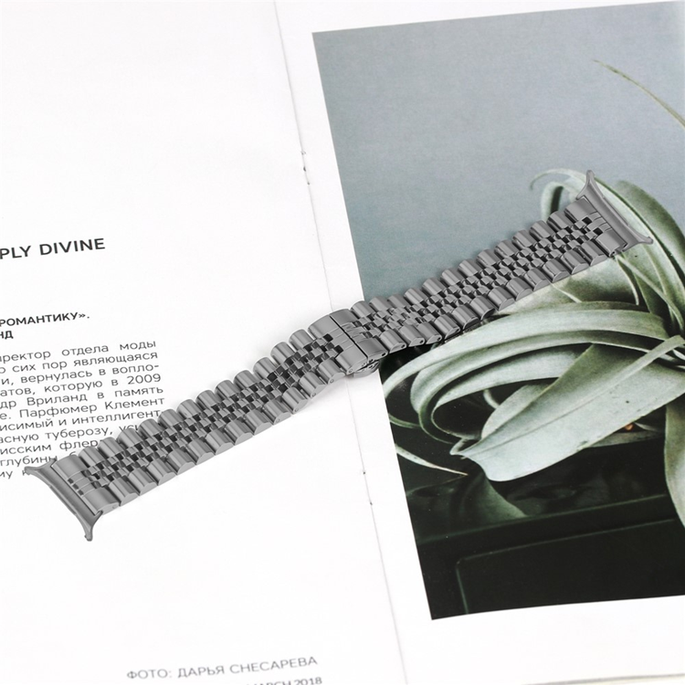 Ge din klocka ett lyft med detta eleganta armband i rostfritt stål – en perfekt kombination av klass, styrka och komfort. Tillverkat av högkvalitativt rostfritt stål ger det en lyxig känsla och en professionell look som passar lika bra på kontoret som vid festliga tillfällen. Den tidlösa designen med femlänksstruktur ger klockan ett sofistikerat uttryck som aldrig går ur tiden.