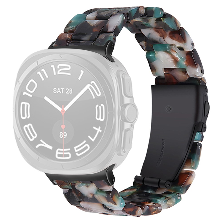 Ge din klocka en ny, modern känsla med detta stilrena klockarmband i akrylresin. Det är tillverkat av högkvalitativt material som kombinerar lätthet med slitstyrka – en perfekt balans för dig som vill ha ett alternativ till tunga metallarmband. Med sin eleganta yta och trendiga design blir det ett armband som passar lika bra till vardagens aktiviteter som till mer formella tillfällen.