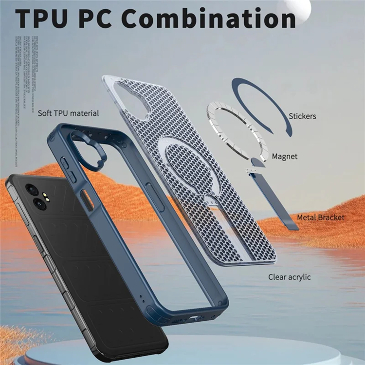 Galaxy XCover 7 Pro Mobilskal Magsafe Grid Texture Kickstand TPU - Blå