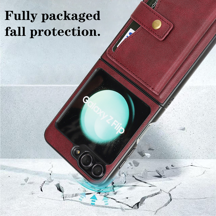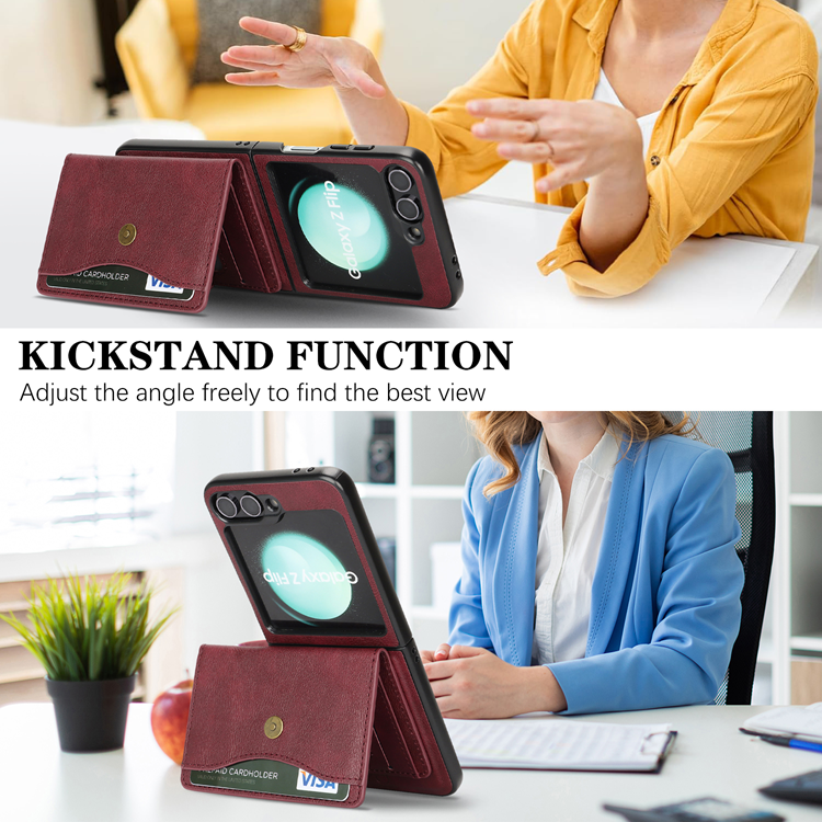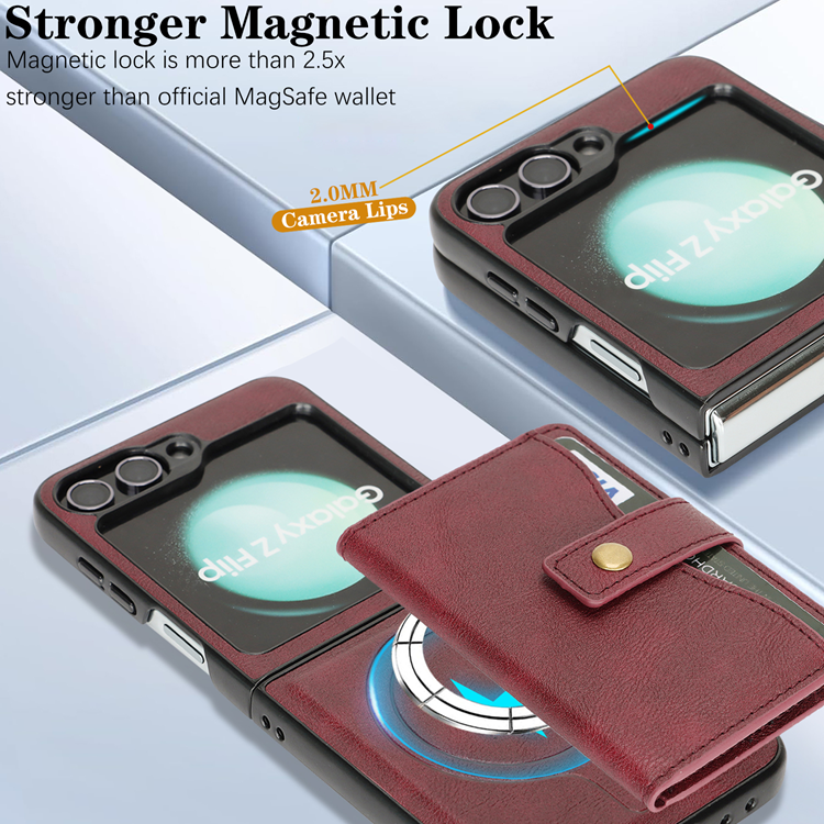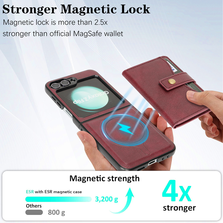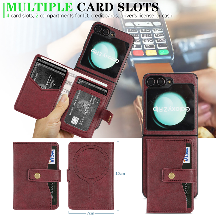 Galaxy Z Flip 6 Mobilskal MagSafe med Detachable Korthållare Kickstand PU-Läder Coated TPU - Röd