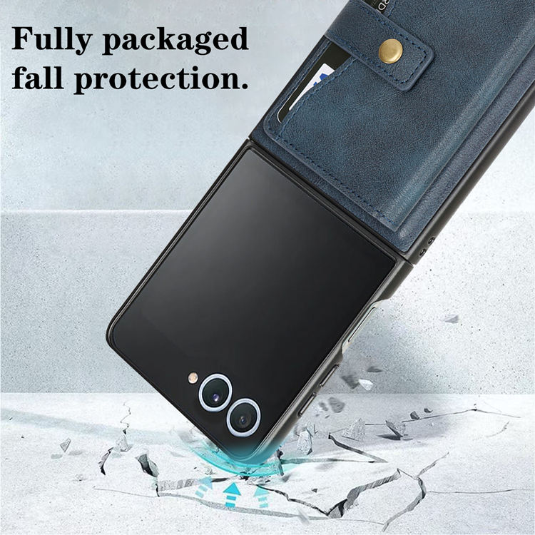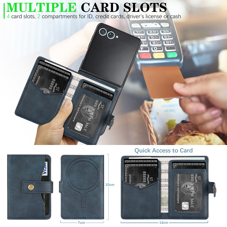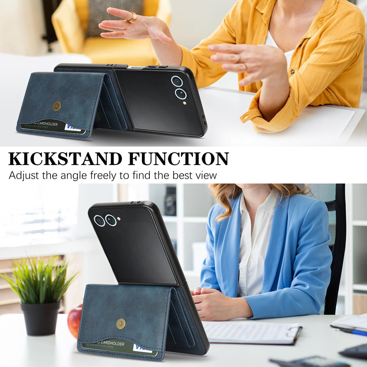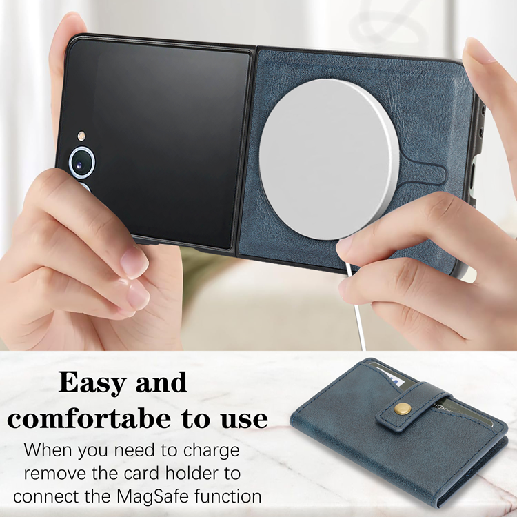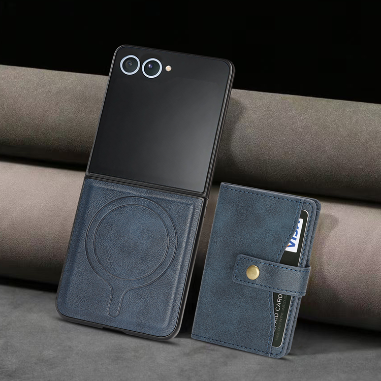 Z Flip 7 Mobilskal MagSafe med Detachable Korthållare Kickstand PU-Läder Coated TPU - Blå