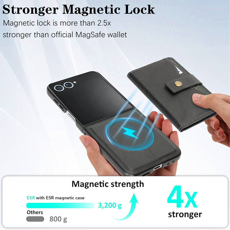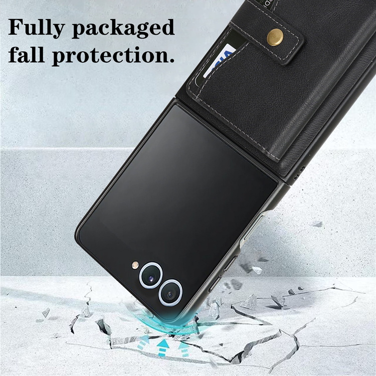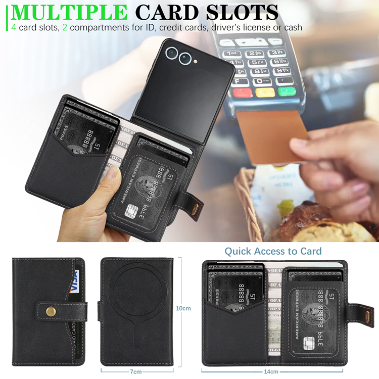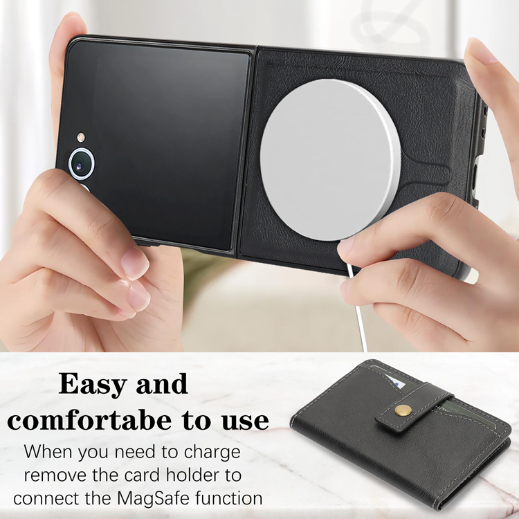 Galaxy Z Flip 7 Mobilskal MagSafe med Detachable Korthållare Kickstand PU-Läder Coated TPU - Svart