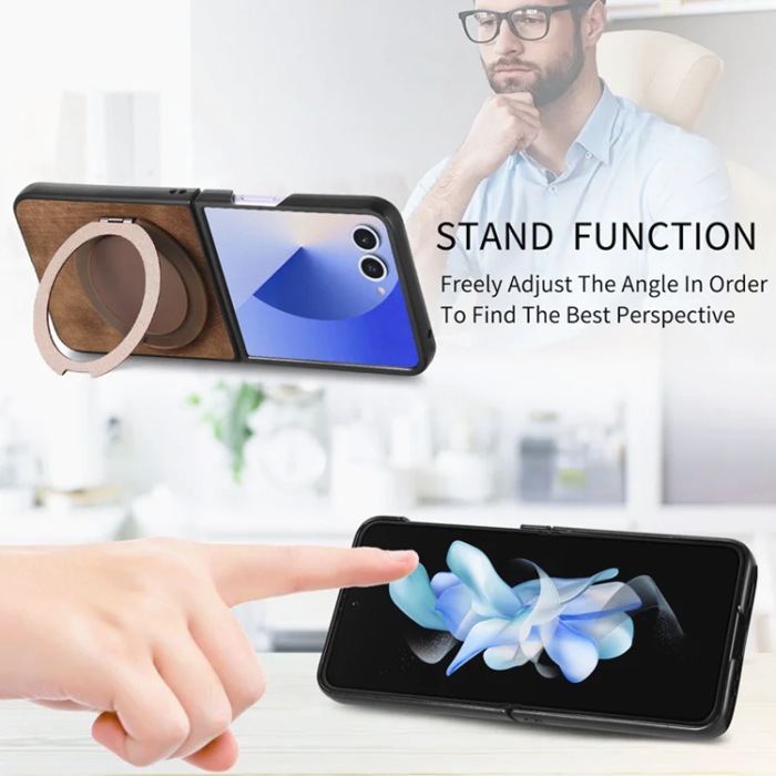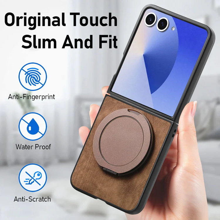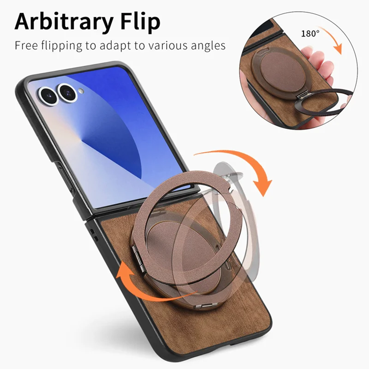Galaxy Z Flip 7 Mobilskal Magsafe Roterande Kickstand Stressavlastande Retroläder - Brun