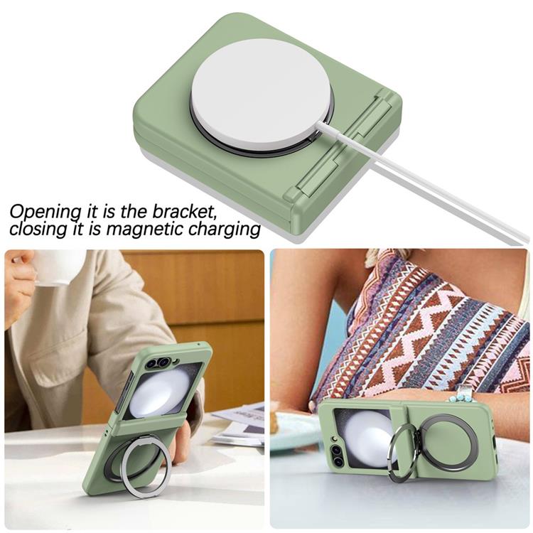 Galaxy Z Flip 7 Mobilskal Magsafe Kickstand Spring Hinge PC Folding - Grön