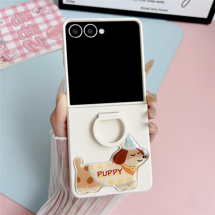 Galaxy Z Flip 7 Mobilskal Silikon Ring Med Cartoon Dachshund Sticker PC + TPU - Antikvit