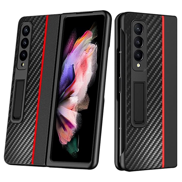 Galaxy Z Fold 4 Skal Carbon Fiber Texture Kickstand Splicing Anti-scratch Feature Läder + PC - Röd