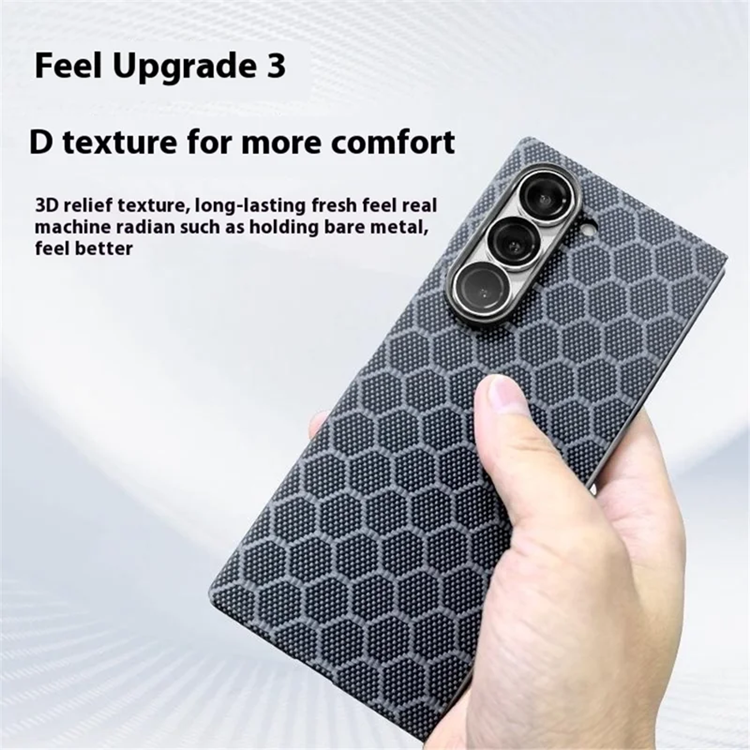 Den innovativa 3D-texturerade ytan ger ett bekvämt grepp och bevarar känslan av en naken mobil, samtidigt som den förblir reptålig och fräsch över tid. Det inbyggda magnetiska ringen gör skalet fullt kompatibelt med MagSafe-laddning. Den moderna bikake-designen tillför ett exklusivt uttryck, medan den upphöjda frontkanten skyddar skärmen från repor när mobilen placeras på plana ytor.