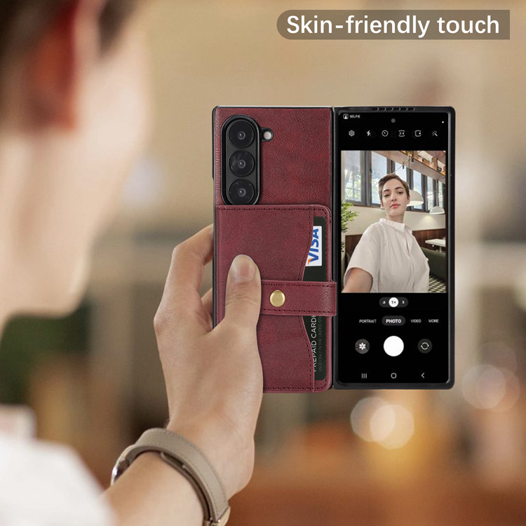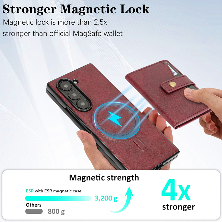 Galaxy Z Fold 7 Mobilskal MagSafe med Detachable Korthållare Kickstand PU-Läder Coated TPU - Röd