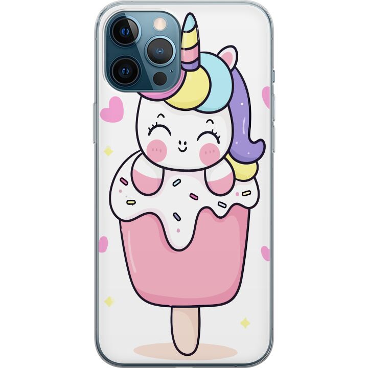 Ett genomskinligt mobilskal för iPhone 12 Pro Max med ett trendigt Glad enhörning tryck på baksidan. Skalet har en perfekt passform som skyddar din telefon mot repor, damm och smuts samtidigt som designen gör mobilen mer personlig.