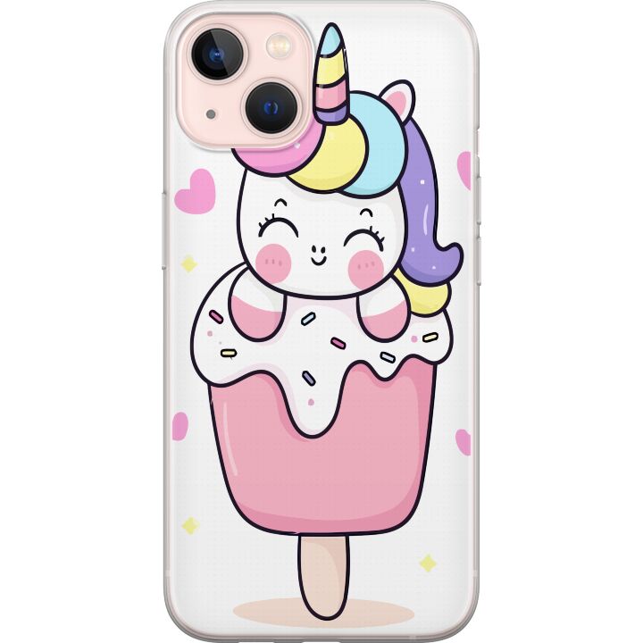 Ett genomskinligt mobilskal för iPhone 13 mini med ett trendigt Glad enhörning tryck på baksidan. Skalet har en perfekt passform som skyddar din telefon mot repor, damm och smuts samtidigt som designen gör mobilen mer personlig.