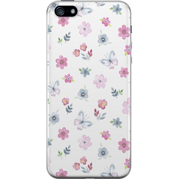 Ett genomskinligt mobilskal för iPhone 5 med ett trendigt Blommor och fjärillar tryck på baksidan. Skalet har en perfekt passform som skyddar din telefon mot repor, damm och smuts samtidigt som designen gör mobilen mer personlig.