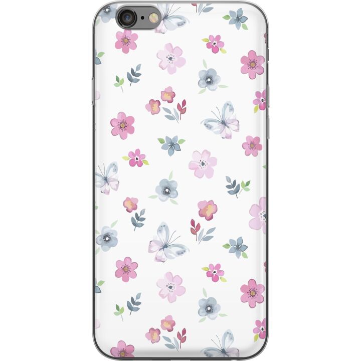 Ett genomskinligt mobilskal för iPhone 6 Plus med ett trendigt Blommor och fjärillar tryck på baksidan. Skalet har en perfekt passform som skyddar din telefon mot repor, damm och smuts samtidigt som designen gör mobilen mer personlig.