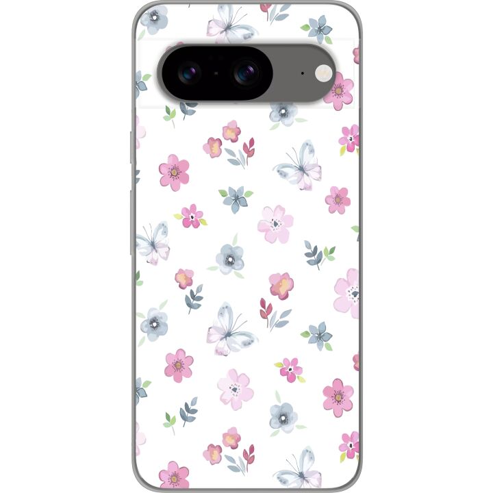 Ett genomskinligt mobilskal för Pixel 8 med ett trendigt Blommor och fjärillar tryck på baksidan. Skalet har en perfekt passform som skyddar din telefon mot repor, damm och smuts samtidigt som designen gör mobilen mer personlig.