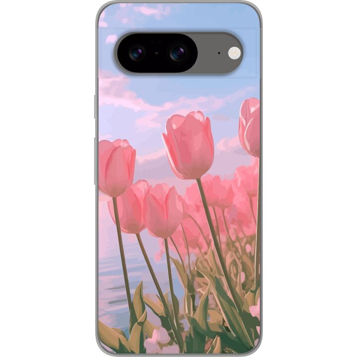 -Designat för Pixel 8 med modernt Rosa Tulpaner mönster