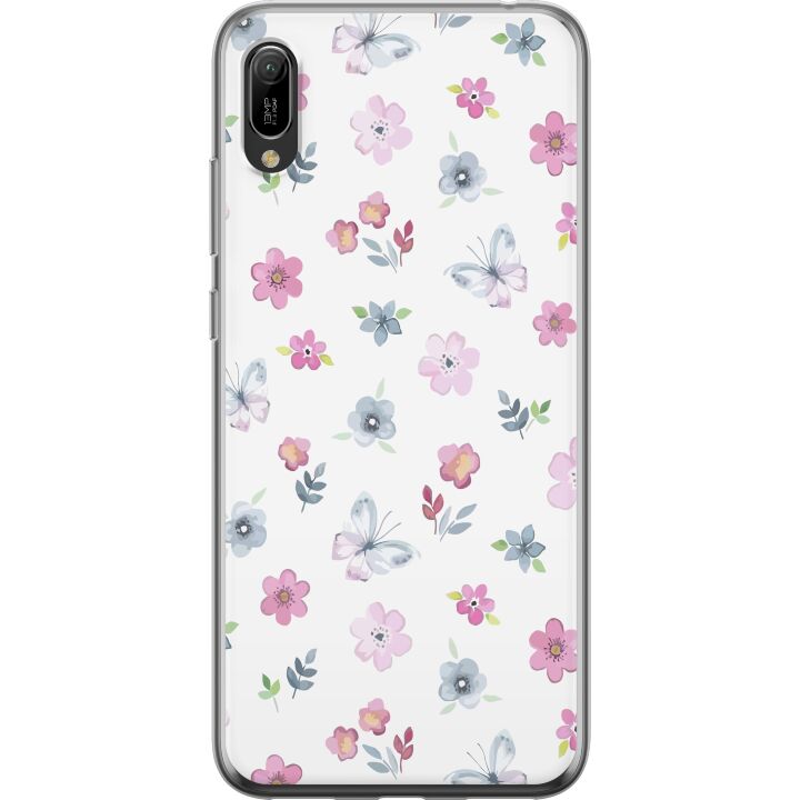 Ett genomskinligt mobilskal för Y6 Pro (2019) med ett trendigt Blommor och fjärillar tryck på baksidan. Skalet har en perfekt passform som skyddar din telefon mot repor, damm och smuts samtidigt som designen gör mobilen mer personlig.