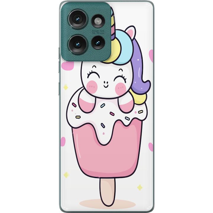 Ett genomskinligt mobilskal för Edge 50 med ett trendigt Glad enhörning tryck på baksidan. Skalet har en perfekt passform som skyddar din telefon mot repor, damm och smuts samtidigt som designen gör mobilen mer personlig.