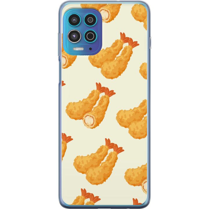 Ett genomskinligt mobilskal för Moto G100 med ett trendigt Räkor tryck på baksidan. Skalet har en perfekt passform som skyddar din telefon mot repor, damm och smuts samtidigt som designen gör mobilen mer personlig.