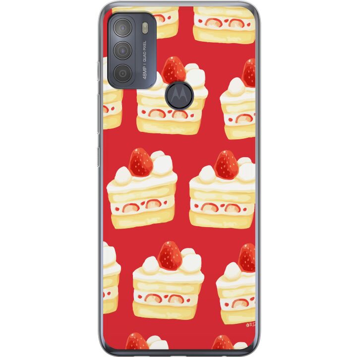 Ett genomskinligt mobilskal för Moto G50 med ett trendigt Tårta tryck på baksidan. Skalet har en perfekt passform som skyddar din telefon mot repor, damm och smuts samtidigt som designen gör mobilen mer personlig.