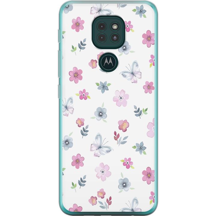 Ett genomskinligt mobilskal för Moto G9 Play med ett trendigt Blommor och fjärillar tryck på baksidan. Skalet har en perfekt passform som skyddar din telefon mot repor, damm och smuts samtidigt som designen gör mobilen mer personlig.