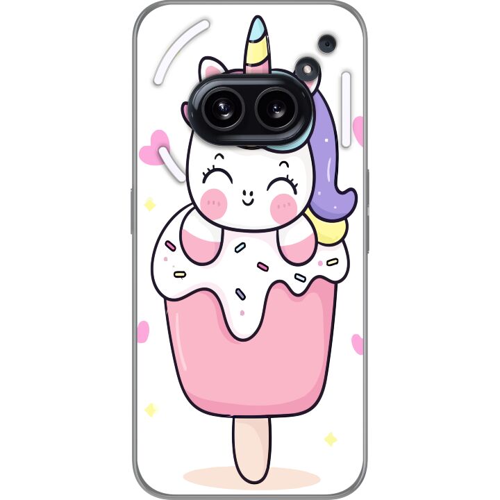 Ett genomskinligt mobilskal för Phone (2a) med ett trendigt Glad enhörning tryck på baksidan. Skalet har en perfekt passform som skyddar din telefon mot repor, damm och smuts samtidigt som designen gör mobilen mer personlig.