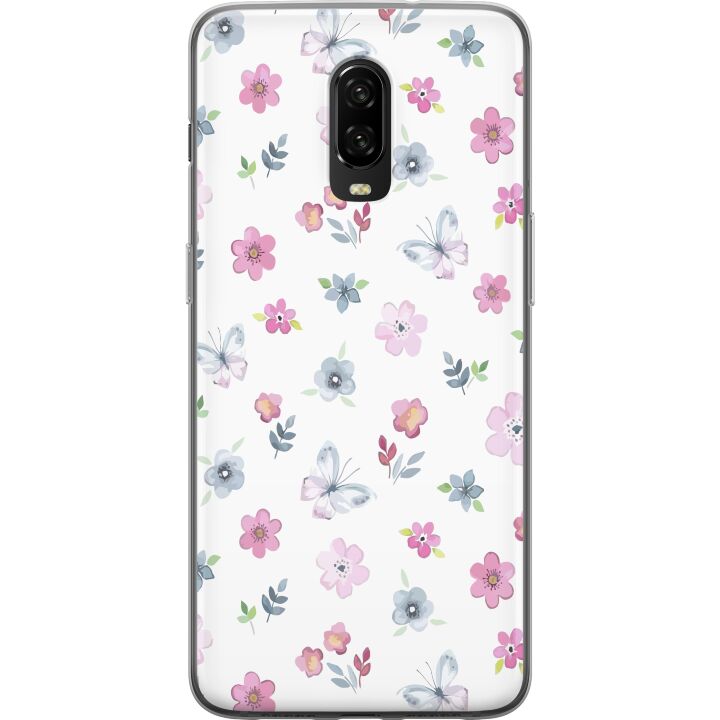 Ett genomskinligt mobilskal för 6T med ett trendigt Blommor och fjärillar tryck på baksidan. Skalet har en perfekt passform som skyddar din telefon mot repor, damm och smuts samtidigt som designen gör mobilen mer personlig.