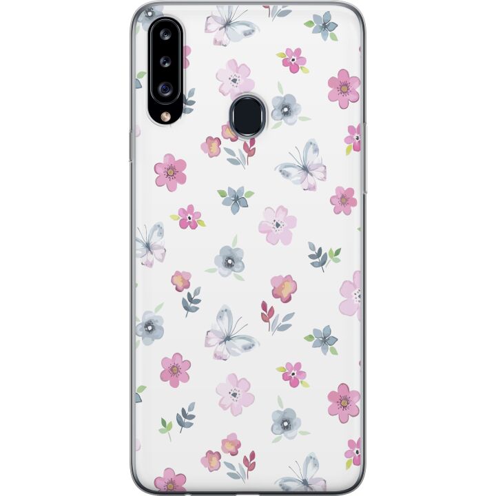 -Designat för Galaxy A20s med modernt Blommor och fjärillar mönster