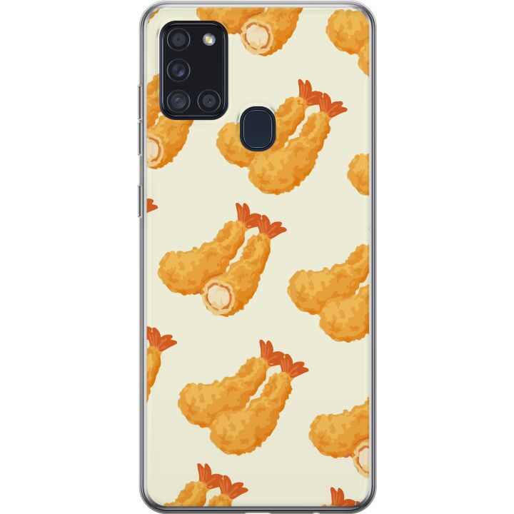 Ett genomskinligt mobilskal för Galaxy A21s med ett trendigt Räkor tryck på baksidan. Skalet har en perfekt passform som skyddar din telefon mot repor, damm och smuts samtidigt som designen gör mobilen mer personlig.
