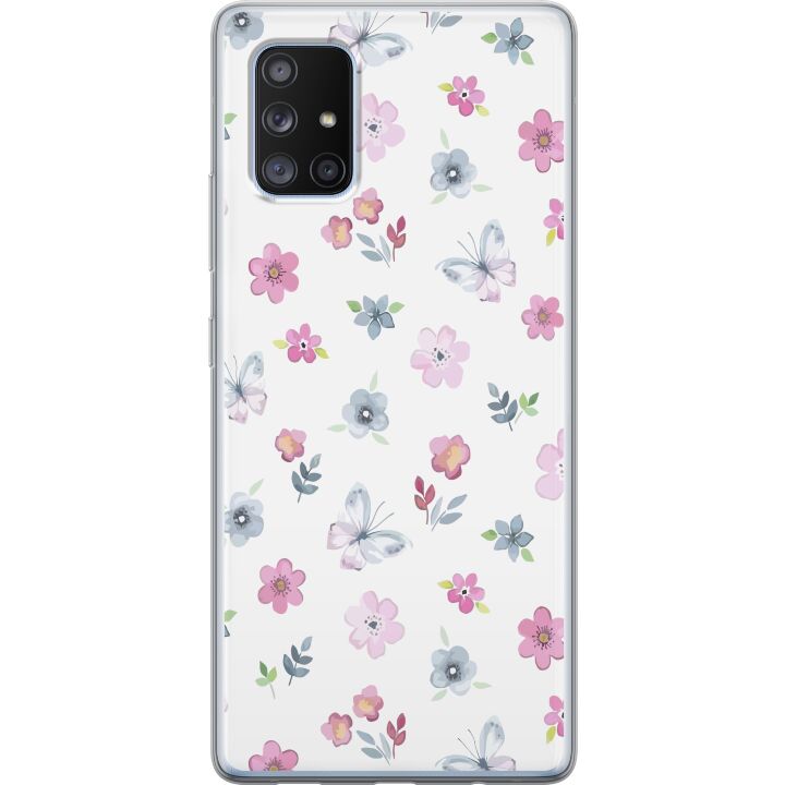 Ett genomskinligt mobilskal för Galaxy A71 5G med ett trendigt Blommor och fjärillar tryck på baksidan. Skalet har en perfekt passform som skyddar din telefon mot repor, damm och smuts samtidigt som designen gör mobilen mer personlig.