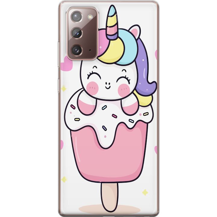 Ett genomskinligt mobilskal för Galaxy Note20 med ett trendigt Glad enhörning tryck på baksidan. Skalet har en perfekt passform som skyddar din telefon mot repor, damm och smuts samtidigt som designen gör mobilen mer personlig.