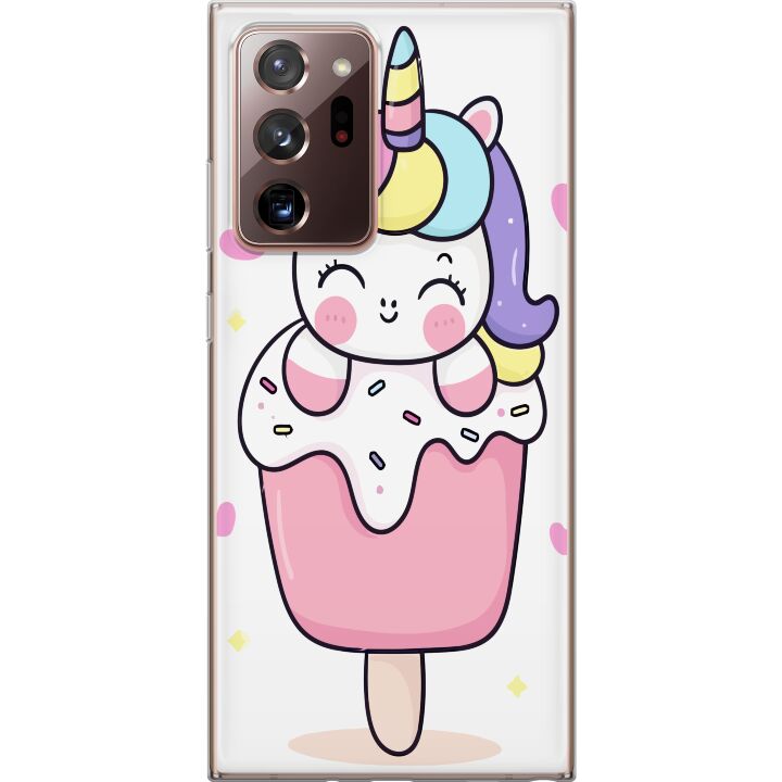 Ett genomskinligt mobilskal för Galaxy Note20 Ultra med ett trendigt Glad enhörning tryck på baksidan. Skalet har en perfekt passform som skyddar din telefon mot repor, damm och smuts samtidigt som designen gör mobilen mer personlig.