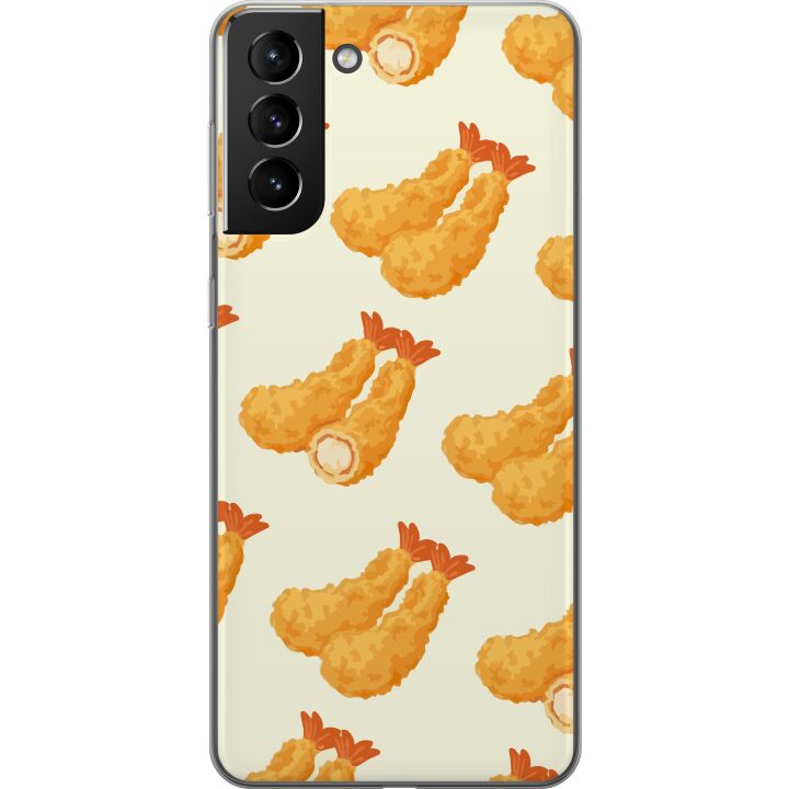 Ett genomskinligt mobilskal för Galaxy S21+ 5G med ett trendigt Räkor tryck på baksidan. Skalet har en perfekt passform som skyddar din telefon mot repor, damm och smuts samtidigt som designen gör mobilen mer personlig.