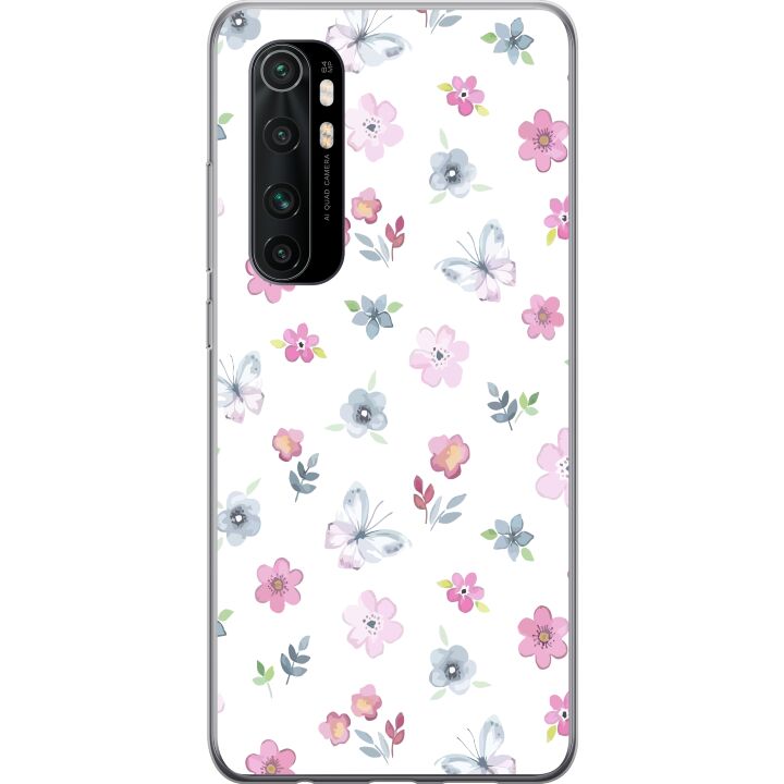 Ett genomskinligt mobilskal för Mi Note 10 Lite med ett trendigt Blommor och fjärillar tryck på baksidan. Skalet har en perfekt passform som skyddar din telefon mot repor, damm och smuts samtidigt som designen gör mobilen mer personlig.