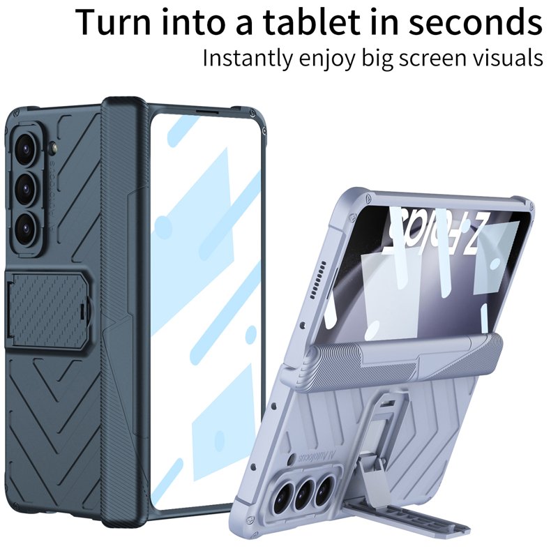 GKK Armor fodralet för Samsung Galaxy Z Fold5 erbjuder överlägsen skydd och funktionalitet. Tillverkat av hållbar PC, skyddar det din telefon mot repor och stötar. Med smarta funktioner som magnetisk gångjärnsskydd och kickstand, är detta fodral perfekt för både arbete och nöje.
