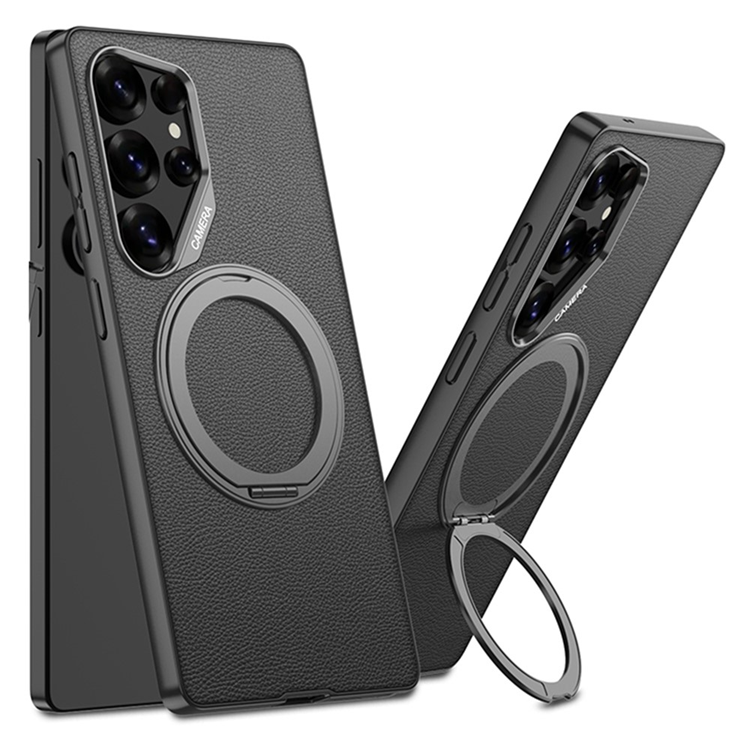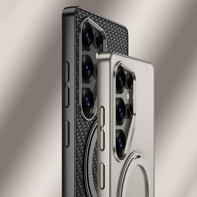 GKK Galaxy S24 Ultra Mobilskal MagSafe Kickstand Large Lens Cutout PU + TPU + PC - Svart
